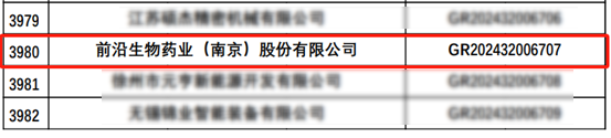 近日,全國高新技術(shù)企業(yè)認定管理工作領(lǐng)導小組辦公室發(fā)布了《對江蘇省認定機構2024年認定報備的第二批高新技術(shù)企業(yè)進(jìn)行備案公示》,前沿生物再次通過(guò)國家高新技術(shù)企業(yè)認定。