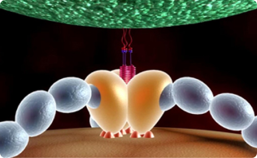 艾可寧?是一種以HIV膜蛋白gp41為靶點(diǎn)的長(cháng)效融合抑制劑,由34個(gè)氨基酸和一個(gè)修飾化學(xué)基團組成。艾可寧?具有獨特的作用機制,艾可寧?-白蛋白共價(jià)結合物以HIV-1 膜蛋白gp41為靶點(diǎn),抑制病毒包膜與人體細胞膜的融合,在第一環(huán)節阻止病毒進(jìn)入細胞,發(fā)揮其抗病毒作用。艾可寧?通過(guò)其側鏈修飾基團與血液中白蛋白發(fā)生1:1分子比的特異性結合,形成穩定的共軛體而延長(cháng)其半衰期,從而實(shí)現對病毒的長(cháng)效抑制。